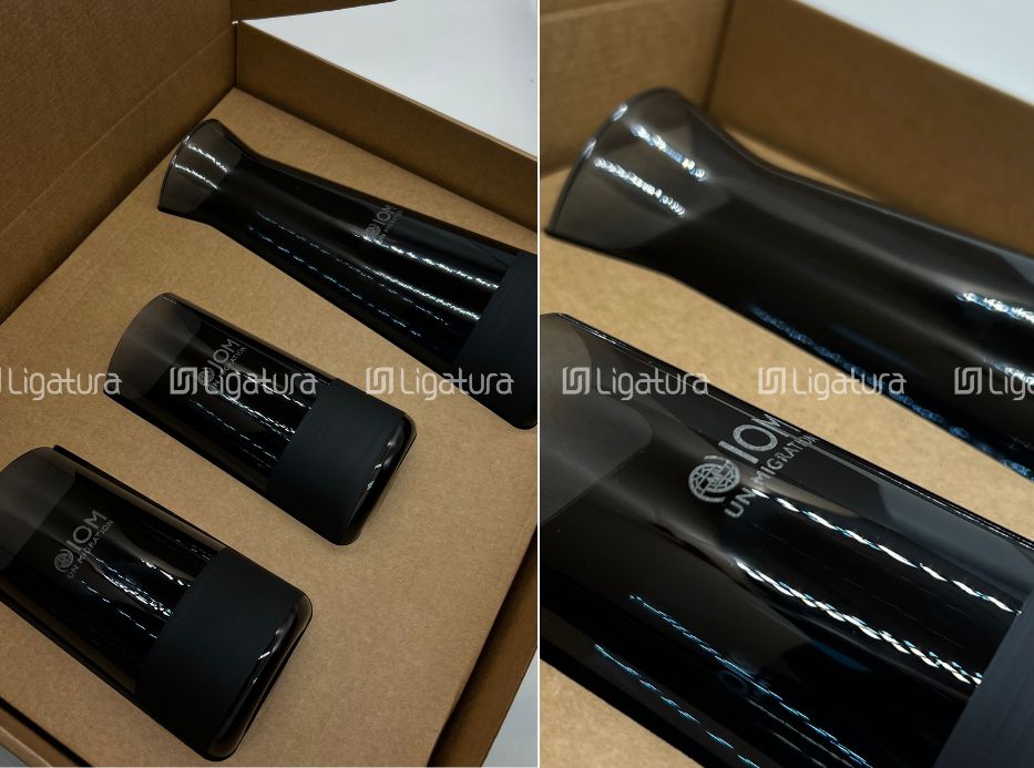 Термос (УФ-печать), кружка и фляга (гравировка)